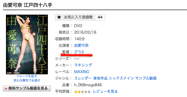 這次中獎的是片商Moodyz的專屬女優、也是恵比寿マスカッツ(惠比壽麝香葡萄)成員的「由愛可奈」,她生涯非常著名的作品「江戸四十八手」流出了約15分鐘的片段,非常養眼且吸精: