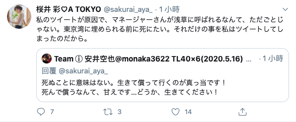 我蠻擔心這位女優的,眾所皆知,在被「影迷」尾隨性侵害後她的精神狀況一直不太好,這事我也不知道有沒有她寫得那麼嚴重,但我真的不希望她做傻事啊〜