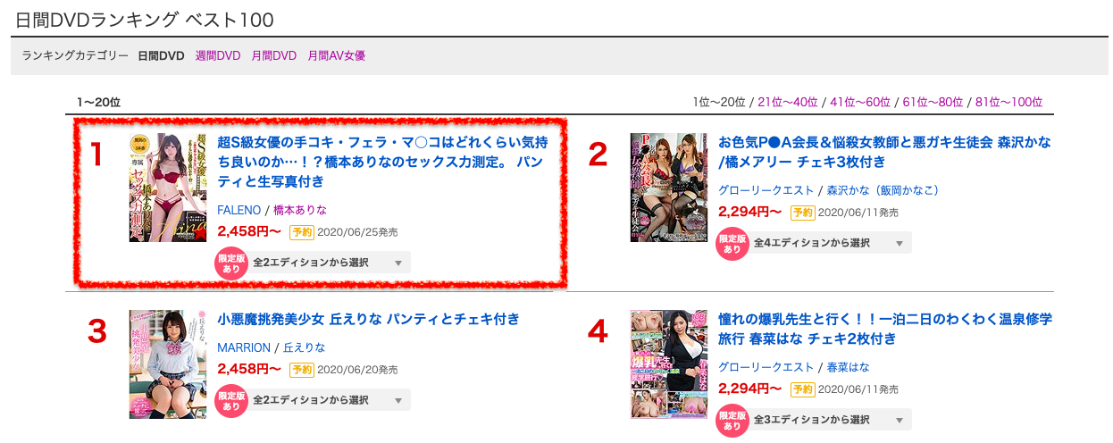所以她馬上空降拿了個單日銷售冠軍。對,我知道是Faleno特典版又送內褲又送拍立得促銷才能賣這麼好,但不管怎樣,S1時代的橋本不管什麼時候都沒有拿過單日銷售第一的: