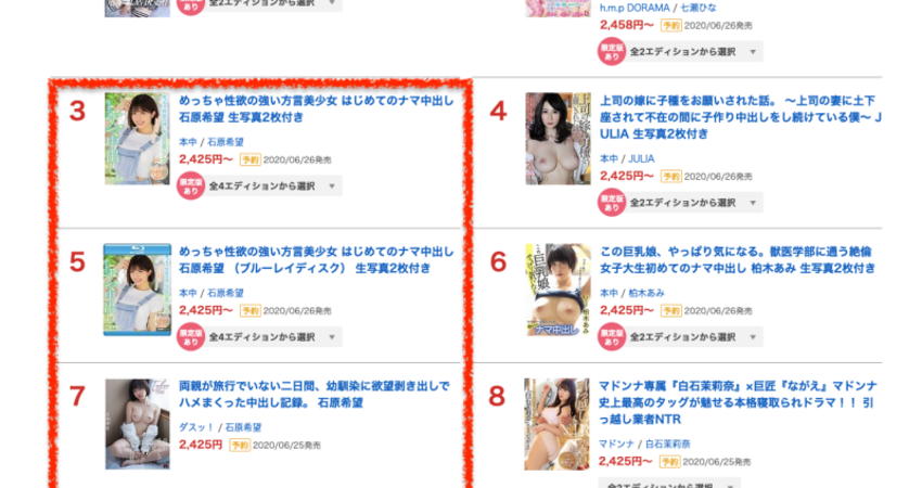 而且比起乙白さやか(乙白沙也加)運氣好,石原希望的努力大家都有看見也樂於應援她,就算風俗資歷被披露也對她無傷,才讓她大鵬一日同風起扶搖直上九千里。市場上的發片機器我們見過很多,共同的特色是大家在被片商肯定前都有過拍了一片不知道有沒有下一片的苦日子,但石原希望不一樣,她很有可能出道的第一個月就成了市場上最強的發片機器,雖然能維持多久不知道,但也相當光榮了~