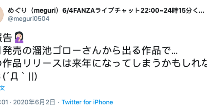 應該也是跟肺炎有關係,緊急狀態命令下來不只讓很多女優陷入經濟危機也讓一些不愁吃穿的老將擔心拍片會有感染風險,所以就算めぐり(惠理)告訴大家沒有片拍的日子沒炮打很痛苦,但日本群聚感染的問題實在太嚴重,犯不著為了幾個錢冒那麼大的風險喔,你說是吧?