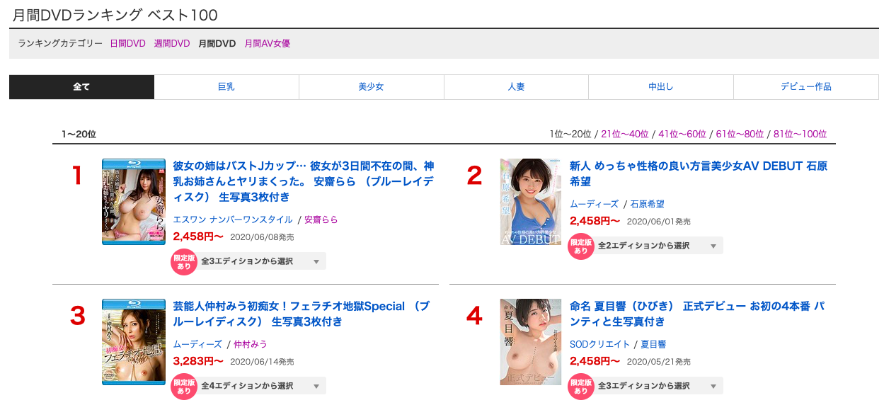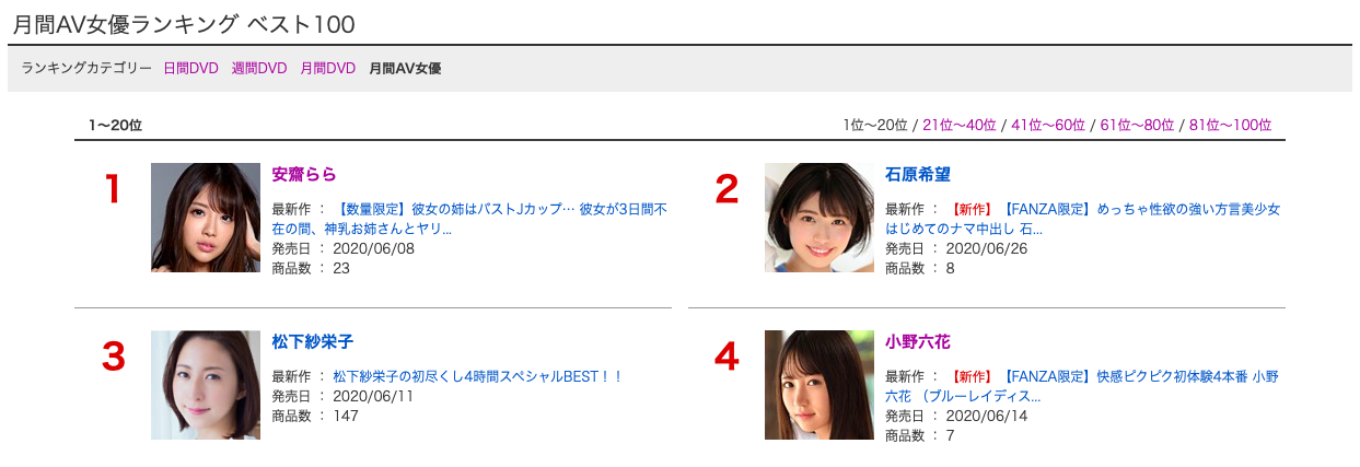 答案是「石原希望」,她有多厲害呢?除了在Will集團(北都,前CA)破天荒地在5家片商同時發片外她也賣得嚇嚇叫ー在Moodyz的出道作「新人 めっちゃ性格の良い方言美少女AV DEBUT」只輸給了神乳安齋らら(安齋拉拉),累積下來的銷售量也只敗給了同一個人: