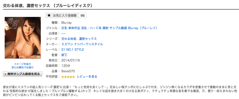 我試了一下,發現至少有兩支作品還可以在FANZA(DMM)上找到,分別是「秘密捜査官の女 巨乳エージェント恥辱の報酬」和「交わる体液、濃密セックス」,而看了作品說明就可以發現FANZA把宇都宮しをん(宇都宮紫苑)的名字去掉了⋯