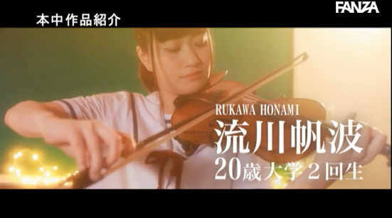 但那不是正常人會使用的促銷方法,所以流川帆波只能照正常步驟慢慢來:為了告訴大家她來自富有家庭,所以片商安排了很多她拉小提琴的橋段ー雖然只能在「本中」出道被男優中出多少說明了業界對她的看法,但我認為這位新人不只小有姿色,被男優插入時的表情也很有「処女喪失」的感覺,瞧她一副慢慢被撐開了好大啊受不了的表情讓我看得是挺興奮的;另外,雖然沒有7月超級新人葵いぶき(葵伊吹)躲顏射躲得那麼誇張,但她被射得滿臉都漿糊時的模樣也很有戲,不知道是很新鮮、還是覺得「這樣好髒」⋯