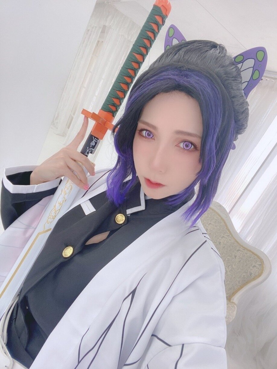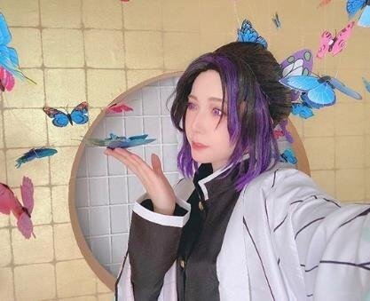 首先是波多野結衣Cos蟲柱「胡蝶忍」,不僅瞳孔變成紫色、前髮也挑染成紫色,頭上戴蝴蝶髮飾,搭上鬼滅隊服簡直完美神還原!
