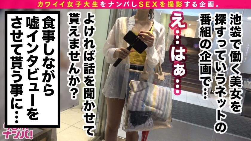 雖然混在人群中,但這位なつき(夏希)馬上就成了男優的目標:沒辦法,她太美了,不去搭訕一下對不起自己的小弟弟,在一番攀談交心後知道對方21歲,是個在泳裝店打工的大學生,因為長得漂亮,所以也會擔任店裡的模特兒拍泳裝照上傳到twitter和IG上,然後她衣服裡正好就穿著待會兒要拍照用的泳裝〜