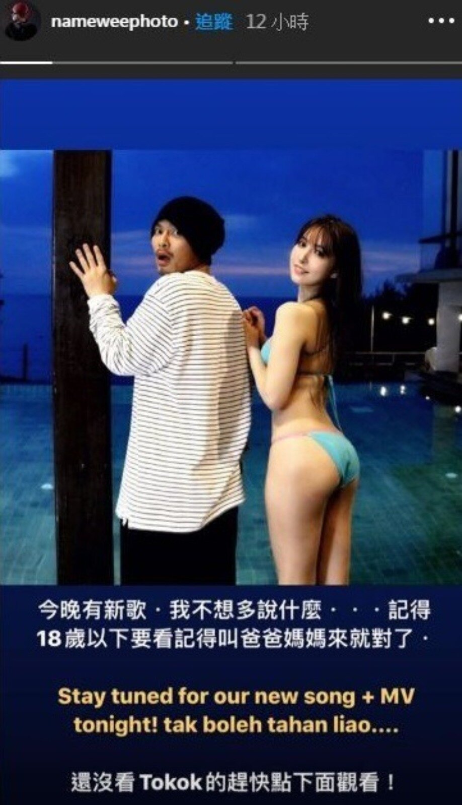 新歌〈不小心〉雖是描寫戀愛中的甜蜜,歌曲盡是不少性暗式雙關語像是「一起啪啪啪拍掌看著舊日劇」、「樹懶叫的聲音」、「下麵給你吃妳妹妹也餓了」、「蝌蚪游來游去」等引人遐想的歌詞,網友都忍不住提醒他,記得這首歌要打上"兒童不宜",女神三上悠亞更在MV中說他是大變態!