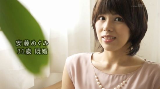 先來看看安藤めぐり(安藤惠)的人設:30歲的她是在某知名服飾品牌上班,已婚,之所以跑來當AV女優是因為性慾實在太過旺盛,老公一根棒子十隻手指已經無法滿足她,所以就下海指名最粗最長的男優來搞一搞: