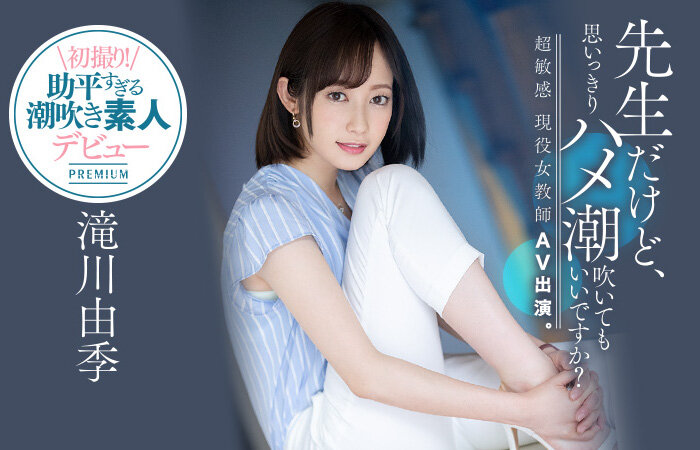 那就是演出「先生だけど、思いっきりハメ潮吹いてもいいですか?超敏感 現役女教師AV出演。」的滝川由季,封面上的她短髮俏麗、條紋襯衫搭配7分褲的打扮勾勒出都會女性的感覺;身分設定也引人入勝,今年25歲的她在高中當老師,在與男朋友分手後已經三年沒被插了,之所以來當AV女優是因為她實在受不了了,再這樣下去下面的小妹妹真的會長蜘蛛網⋯