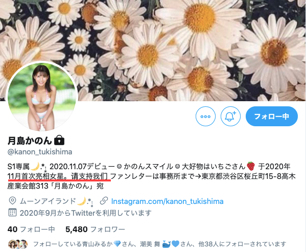 更不要說S1對她非常重視,在有栖花あか(有栖花緋)出道後就把宣傳重心放在她身上,又是不露臉預告又說她是「童顏巨乳長身美少女」,彷彿天底下所有好事都發生在她身上;而且月島かのん(月島花音)不只想在日本AV界成名,從twitter自我介紹欄上的中文翻譯你就知道她志在四方,真的是來大幹一場的: