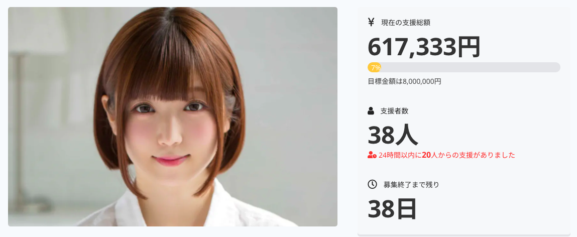 目前已經有超過30人投資了超過60萬日幣,距離800萬的目標還有一段距離,因為時間很短,我是很懷疑佐倉絆能不能完成心願⋯
