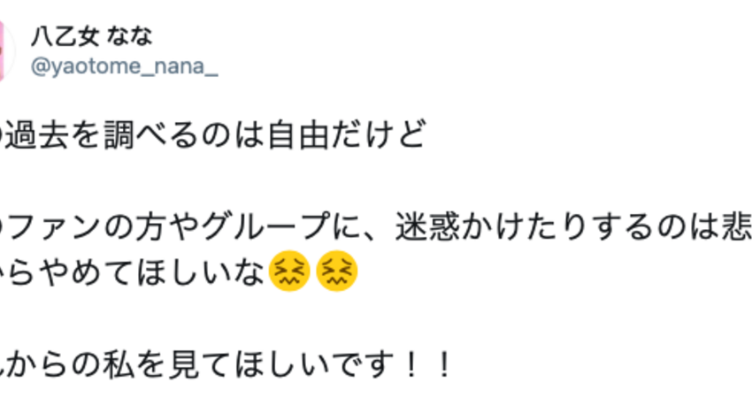看到這篇在Twitter上的推文,你就知道這位要在片商Moodyz出道的八乙女なな(八乙女奈奈)背景不單純:是的,雖然南乃そら(南乃空)不知道為什麼休了一個月沒有發片,但這家片商還是有當過偶像的女優發片;而且從留言來看,八乙女なな(八乙女奈奈)不只是貨真價實的偶像而且身分已經被破解了:
