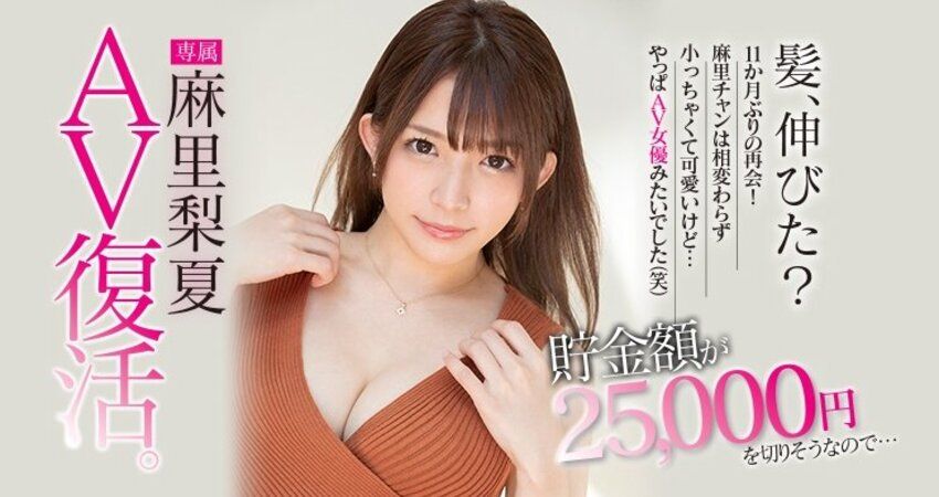 為什麼呢?就和很多復活的AV女優一樣,麻里梨夏說自己「忘不了肉棒的滋味」,但值得注意的是在文案和封面上片商都強調說她現在口袋裡只剩25000円(大概台幣6800元),所以⋯