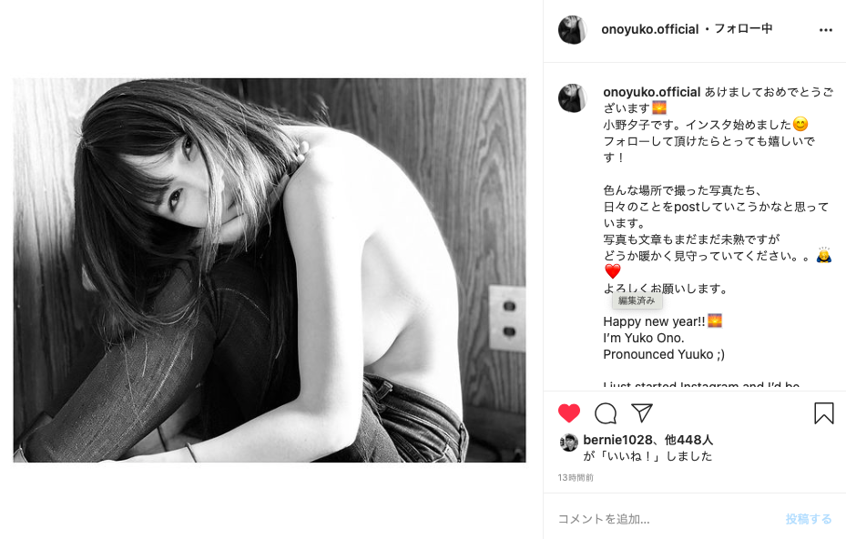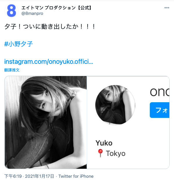 天啊,我真不敢相信,那個不喜歡經營SNS的小野夕子竟然有了IG帳號而且馬上發文更新,最重要的是她日文英文對照而且還承諾會「經常更新」,她是被猂靈奪驅換了個人嗎?