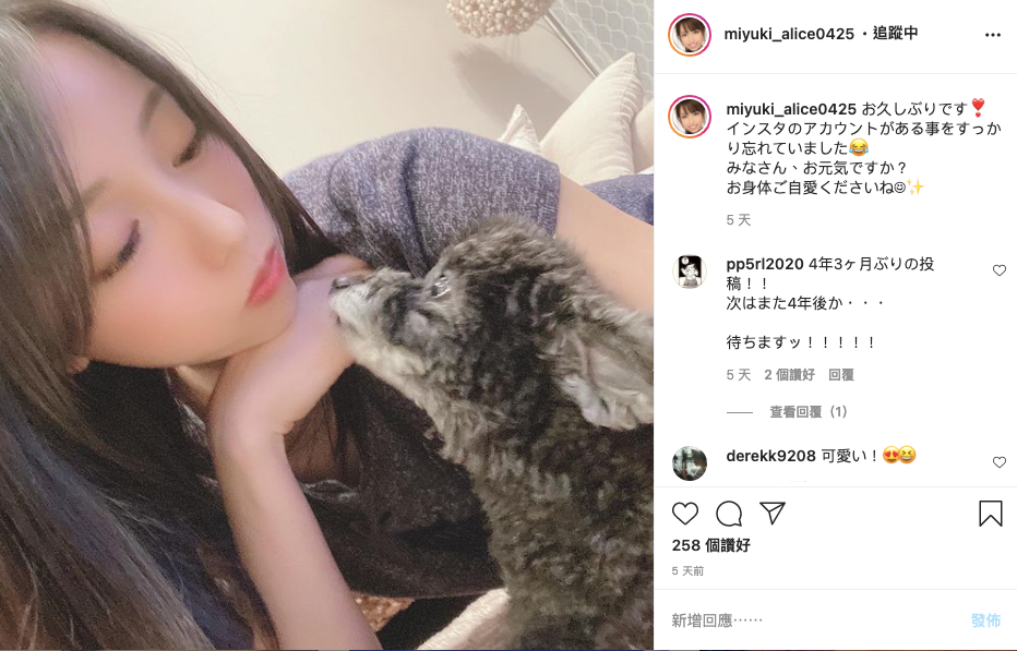 先是更新了IG,雖然沒寫什麼但已經讓人重拾當年在淫幕和她溫存的美好時光;最近她更是以拍片時的藝名(就是美雪ありす啦)進軍直播界,直接在手機螢幕上與大家互動⋯