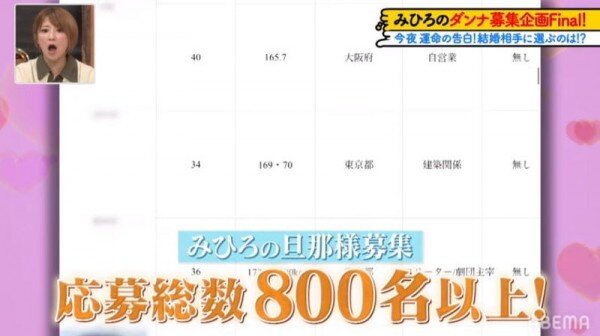 換上了白無垢,みひろ(Mihiro)公開在電視上徵求「結婚的對象」:當然啦,既然是電視企劃那就有可能是寫好劇本的企劃,尤其是看到一口氣有800人應徵: