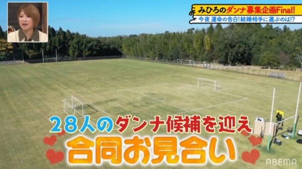 真的有那麼多人想讓みひろ(Mihiro)叫自己老公嗎?我也不是節目單位,無法去為誰背書什麼;而在這800人中みひろ(Mihiro)是篩選出了30人,裡面有歌手、有資訊產業的顧問、有服飾業的老闆還有美容師,在和所有想當みひろ(MIhiro)老公的應徵者稍微聊過後節目就安排他們去踢了一場足球,讓女主角看看他們的體力、從踢球的方式觀察每一位應徵者的個性⋯