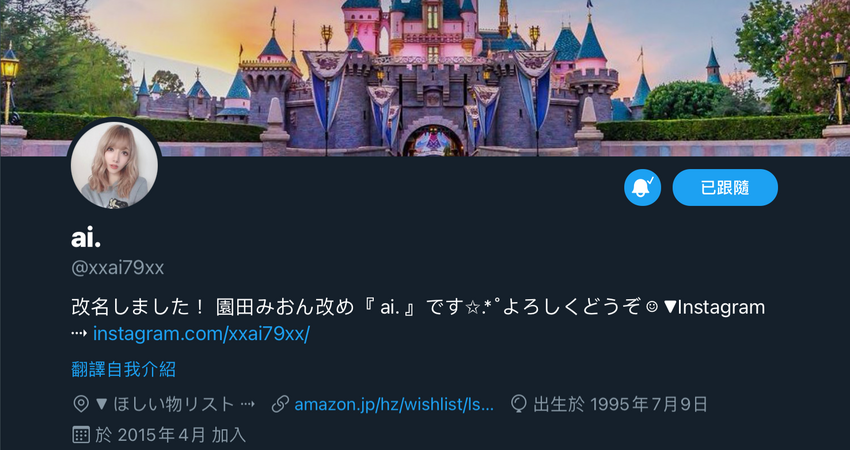 是的,她不再是園田みおん(園田美櫻)了,不只twitter改了名字,連ID也換了⋯