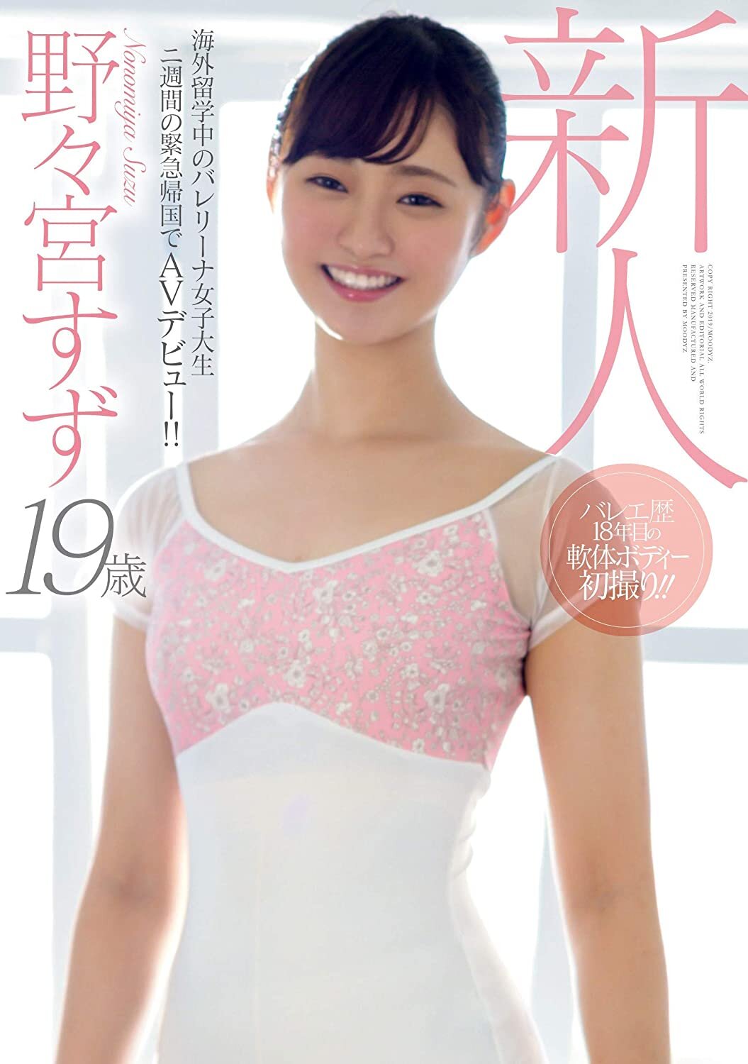 完全沒問題的,讓大家快速了解女優是我們的責任:野々宮すず(野野宮鈴)是2019年在片商Moodyz和本中同時出道的女優,我們都知道這種拍完就走的新人片商往往都會幫她們加上非常誇張的設定,像野々宮すず(野野宮鈴),片商利用她高挑的身材(166公分)及超軟體的特質設定她是個「出國學芭蕾舞的大學生」,而這個設計也陪她走到去年(2020)年中,直到她放棄了這藝名為止: