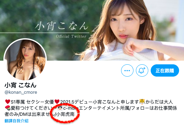 為什麼說她名字很特別呢?因為こなん(Konan)這名字已經陪了我們好久好久,正是那位外表看似小孩、智慧卻過於常人的名偵探コナン(柯南),正當我想半開玩笑地和事務所說我想把她的名字翻成「小宵柯南」時,卻又看到她在twitter上自己把名字翻成了「小宵虎南」⋯