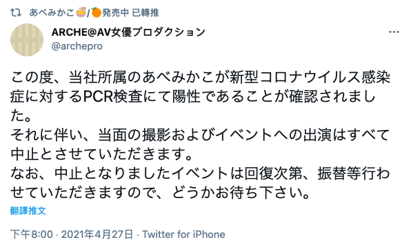 一來是AV界天天都在RUN,あべみかこ(安部未華子)不是默默無聞之輩,她片約不少,然後和她接觸過的人又要繼續拍其他片子,光想都覺得不妙;二來是除了叫確診或是有症狀的人回家隔離不要出來外也沒辦法再做些什麼,難不成要叫男女優戴口罩演出?那有人要看嗎?