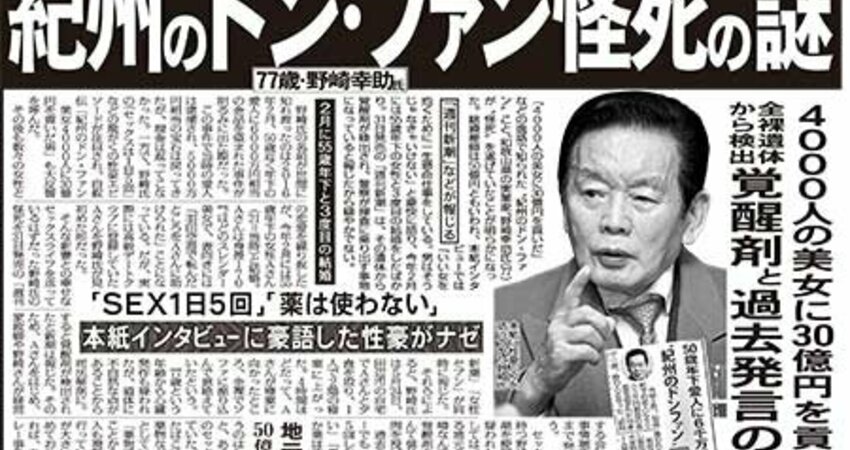 其實這是2018年的事了,有位被稱為「紀州唐璜(西班牙傳說人物,意思就是很會搞女人)」的富豪野崎幸助,他告訴我們什麼叫有錢最帥最粗最會幹,77歲的他據說花了30億日幣搞了4000個女人,最後還娶了個小自己55歲的嫩妻〜