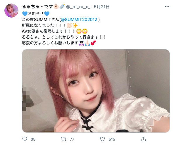 為什麼要回歸呢?我想應該還不到「錢花完了」,而是對未來極度徬徨:引退後的她是轉職去了女僕咖啡廳、偶爾也會去陪酒,原本我以為她是生意不錯才刪掉twitter斬斷和AV界的連結,想不到重啟twitter沒多久的她突然又宣布回歸了: