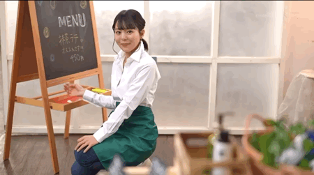看看影片,坦白說,除了在黑板上寫Menu那段,這有像是在咖啡廳打工的小妹嗎?