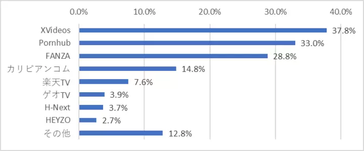 第三,通常是利用什麼網站欣賞成人影片?有7成的人告訴我們他們用XVideos或PornHub,那很糟糕,因為沒有正版授權,名氣很大的FANZA只排在第三,不到3成⋯