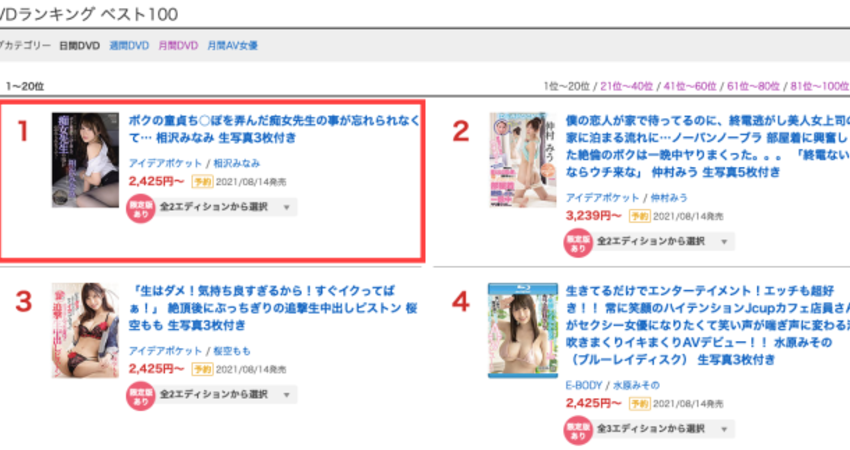 有在研究idepaocket的朋友一定知道相沢みなみ(相澤南)處在一個很奇怪的狀況:基本上13日檔的所有女優都不是她的對手,天天拿銷售排行榜第一就像喝水一樣簡單,但只要一到月排行榜她就會固定退到20名左右(這還是最近有點提升了,之前會掉到40名後);然後明明這麼賣,但ideapocket在更新發片時很少讓她上Banner,就連官網也沒有把她放在最顯眼的位置⋯