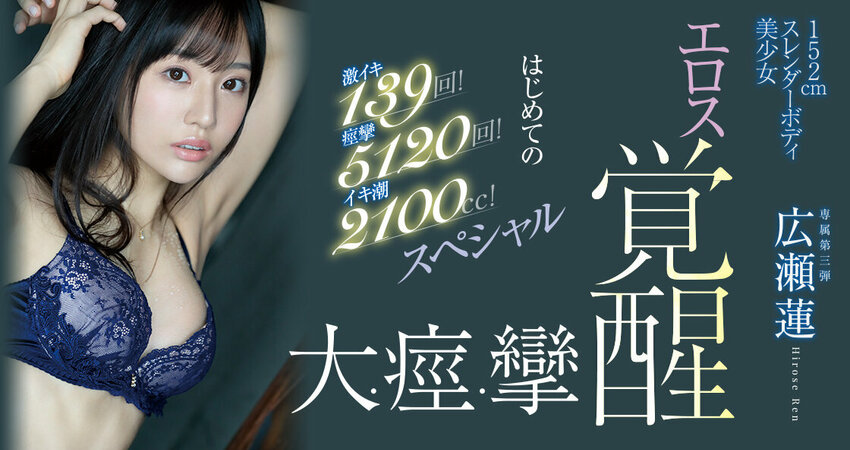 為什麼?除了身高多了2公分、原來多做幾次還會促進發育;另外,我們都知道S1的新人大一大二不分糸,為了讓女優快速熟悉拍攝作業,大家拍攝的作品都是固定的ー第3支是和男友乾柴烈火互相傷害的「交わる体液、濃密セックス」,但広瀬蓮卻沒有跟著規矩走,變成了「激イキ139回!痙攣5120回!イキ潮2100cc! 152cmスレンダーボディ美少女エロス覚醒 はじめての大・痙・攣スペシャル」: