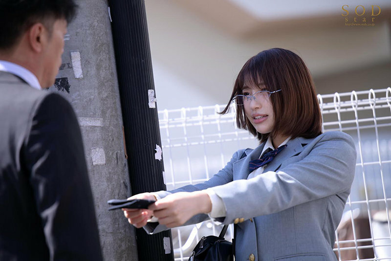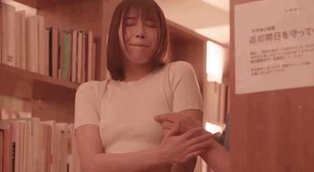 這裡SOD又用了造型的變化來暗示唯井まひろ(唯井真尋)心境的改變,之前她是個眼鏡妹,雖然任痴漢騷擾但心裡卻還有抗拒;但後來眼鏡拿掉了,也就明示我們唯井不再抗拒,成為只給大島丈痴漢的肉便器ー在電車上被玩弄、被帶到廁所打炮、在圖書館用後背位做愛⋯SOD預告影片剪得極好,一方面把唯井極為羞澀卻又努力配合對方的表情抓出來,另一方面卻又用愛液滴到地上的特寫告訴大家「她也很期待啦」: