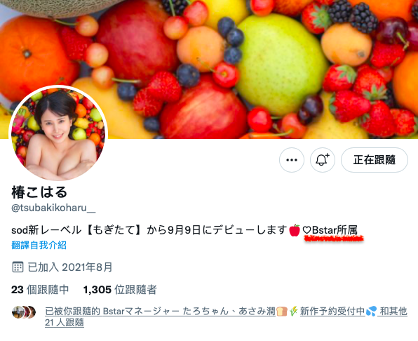 有在研究AV界的朋友應該都發現他們又多了個「もぎたて(新鮮現摘)」的新品牌ー所以創業女優椿こはる(椿小春)躺在一堆水果裡拍封面照,原本我認為SOD八成又是要為那些素人以上女優未滿的新鮮肉體設立個短打用的品牌,但當椿こはる(椿小春)有了twitter撕去那神秘的面紗後我才驚覺自己好傻好天真⋯