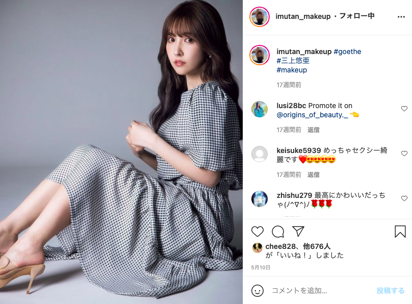 所以他們又成立了兩個帳號,一個是經紀人かへみ(https://twitter.com/yuamikami_mane),另一個則是專屬化妝師Imutan(https://www.instagram.com/imutan_makeup),用他們的視角去紀錄三上悠亜的一舉一動(當然不會有負面形象),讓大家可以藉由這兩人的發文體會和三上一起工作的感覺⋯