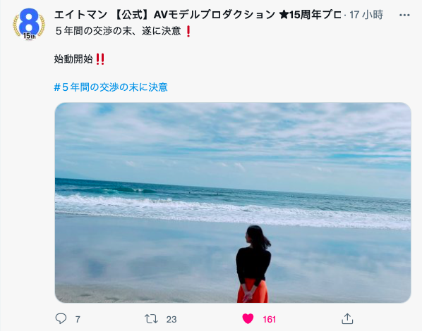 下定決心做什麼呢?應該就是(AV)出道拍片啦:今天在twitter上有人問我8MAN有沒有純做寫真的麻豆?答案當然是肯定的,規模大一點的經紀公司都有涉足寫真業務,只是會另外成立一間不同名字的公司ー所以用8MAN的名字發出來就是要拍AV了〜