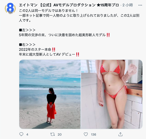 我還是要強調,我沒有那麼厲害,看背影或奶子就能認出她們的身分,不過日本鄉民在8MAN還沒公布兩人身分前就嗅到不對勁的味道,在鍥而不捨地追查下,那位「2022年のスター本命(2022年最愛的大明星)」身分已經呼之欲出: