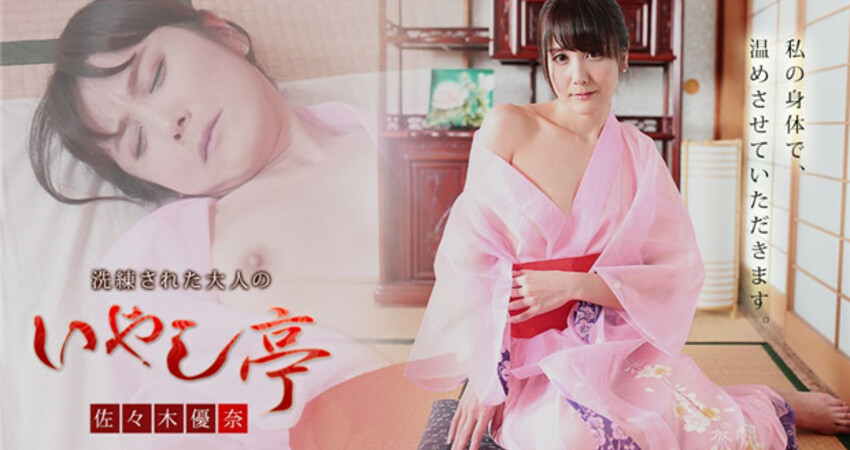 桃色の透けた浴衣に身を包んだ佐々木優奈が、「洗練された大人のいやし亭」にて優しく濃厚なオモテナシをいたします。 仕事帰りのスーツ姿で現れた男性客は、ネクタイを解かれながら興奮が抑えきれないようなので、まずは愛情たっぷりのキスとフェラチオで身体の疲れをほぐしてあげます。そして優奈の浴衣を脱がしながら顔を埋めてくるお客様を優しく包み込むように労ります。優奈は母性本能をくすぐられながら、おまんこを濡れ濡れにして、大きくなったオチンチンを受け入れます。どんどん激しさを増して腰を振られ最後は濃厚な中出しをされて、優奈もお客様も大満足できました。