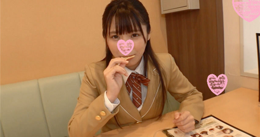 タイトル: ファミレスのテーブル下でイタズラしたらJ〇の方が我慢できなくなって非常階段で即ハメ!ホテルに移動してエロ全開になった10代娘の乳首舐め手コキと騎乗位が圧巻!最後は溜まった精子を全部出し!