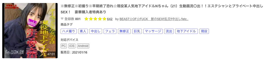 今年1月,在SOD被設定是繭居族的她是以地下偶像N的身分在FC2下馬:因為她真的條件不錯,臉小小的個子高高的還是個剛毛,所以應該蠻多人看過她的鮑鮑了⋯