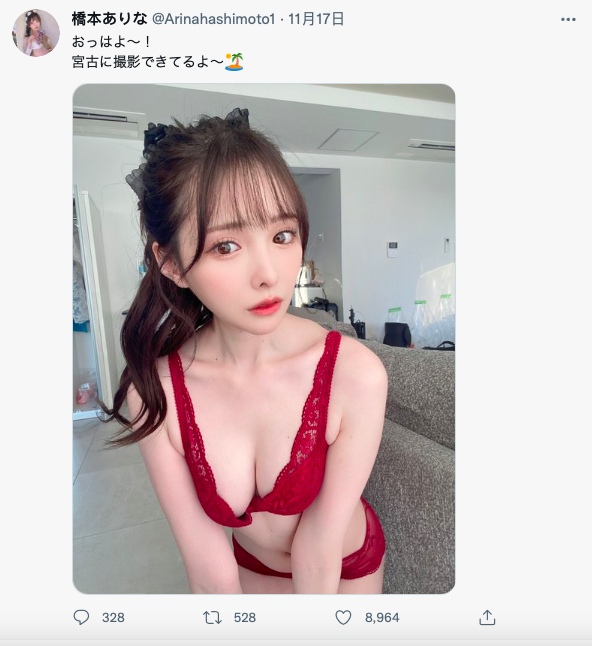 如果是2018年版本的橋本ありな(橋本有菜)那沒問題的,那時候的她超迷twitter,為了吸流量她不但走到哪拍到哪而且對業界八卦知之甚詳,辻本杏引退的原因(存到錢回老家)、RION在片場被大家當老佛爺照顧的事都是她和我說的,只是幾年下來,隨著她成為業界最頂尖的女優,開始深居簡出的生活後她不但佛系經營SNS、業界的八卦好像也和她沒關係了,在2019年的TRE上,她整個像變了一個人似的,我超不習慣的: