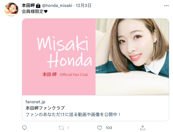 算是吧。雖然twitter和IG的帳號鎖起來了,但本田岬還是有在更新,和一些曾經叱吒風雲的退役女優一樣,她也有搞粉絲團讓影迷斗內,偶爾也會舉辦攝影會和大家見面,活動的規劃和粉絲團的經營都還是由經紀公司Funstar負責⋯