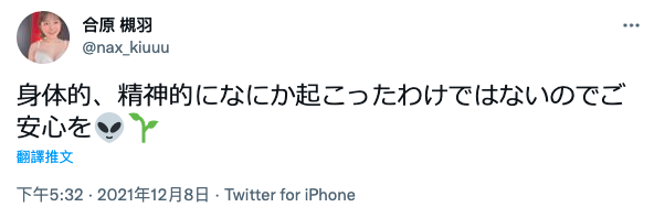 「請放心,我(合原)的身體和心理都沒有任何問題。」