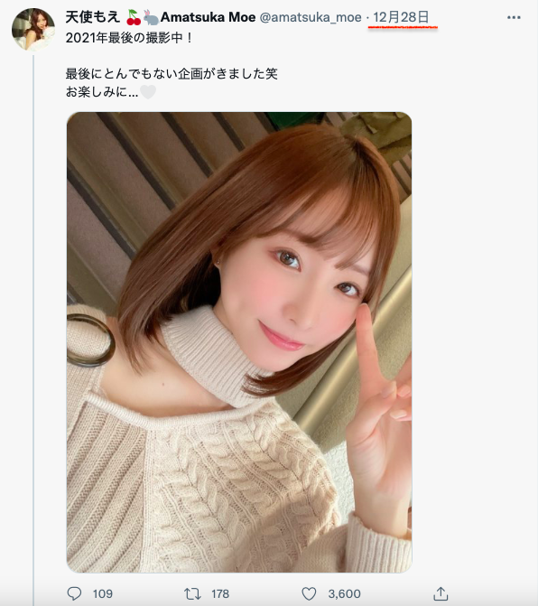12月22日,她去攝影了,拍完片子後現場工作人員獻花給她,這本身就是個很怪的動作,一般而言只有「卒業」或「引退」才有這樣的待遇;然後到了12月28日的時候她又去攝影了,片商的專屬女優不大可能會在這麼短的時間連續演出兩支作品,假如兩支作品都是AV,那我真懷疑天使離開了FALENO〜