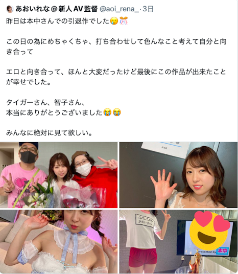 twitter名稱很清楚了,現在的あおいれな(葵玲奈)是新人AV監督!