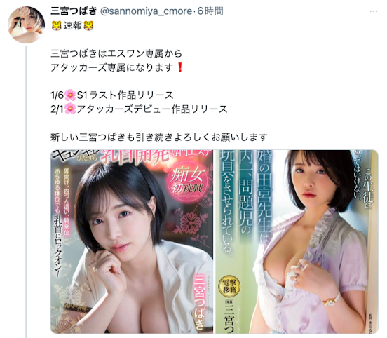這是很好的安排,一來三宮つばき(三宮椿)在S1已經有非常完整的戲劇訓練,抖M輕熟女的形象鮮明,アタッカーズ(Attackers)可以即插即用;二來アタッカーズ(Attackers)是比較安定的環境,我是不敢期待三宮つばき(三宮椿)可以像明里つむぎ(明里紬)移籍過去後再變成兩家片商共同專屬的女優,但比起Madonna用了6片就把児玉れな(兒玉玲奈)扔了,アタッカーズ(Attackers)應該會給三宮つばき(三宮椿)多一點時間證明自己;