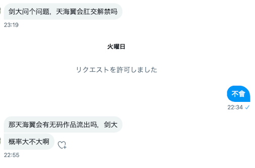 有個朋友傳私訊給我,問我天海つばさ(天海翼)有沒有演出肛交的機會?