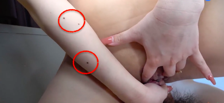 透過大腿內側的色塊和右手臂上的痣比對,可以確認她就是「春名紗奈」,也許有些朋友根本沒聽這名字,但想當初Moodyz給她的人設非常鬼扯淡,出道前她是個在精油沙龍保養男人攝護腺幫忙排毒的妹子,在封面上比OK是告訴大家想怎麼幹都可以,她歡喜做甘願受!