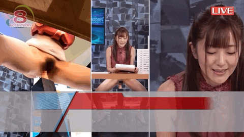 明明椅子被調成滿清十大酷刑的小木馬、明明一面播報一面還得被按摩棒震動刺激或是直接被插入了,但青空ひかり(青空光)還得一本正經地播報新聞,彷彿上下半身是屬於不同個體的: