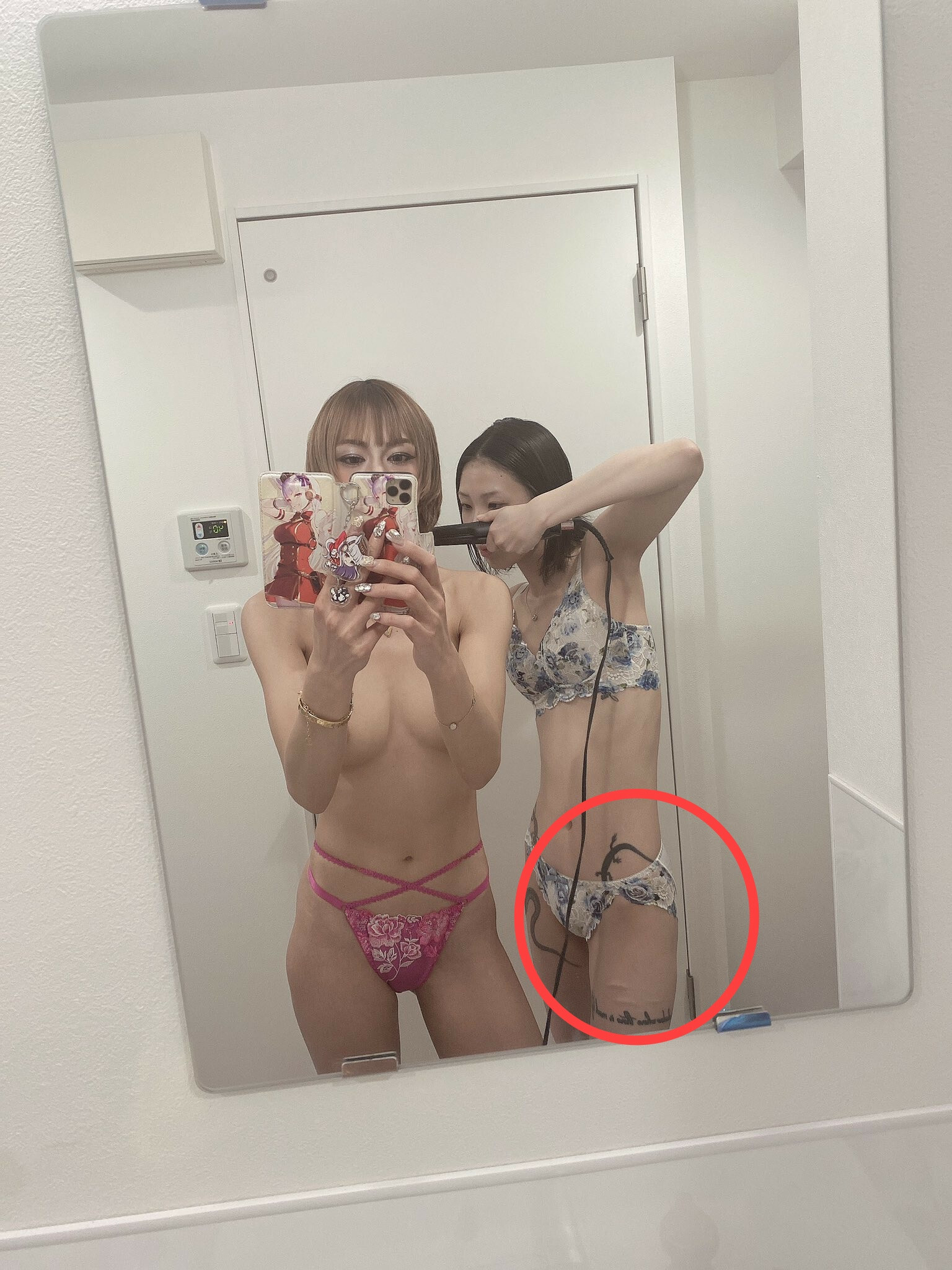 只是話說回來,這種一身刺青沒辦法遮的女優在日本AV界通常很難出頭(因為日本人不太接受刺青,而且還這麼多),不過要認她倒也不難,找到身上有一樣圖騰的女優就行了,正好有個才剛於twitter現身的女優符合這個條件,那就是ー