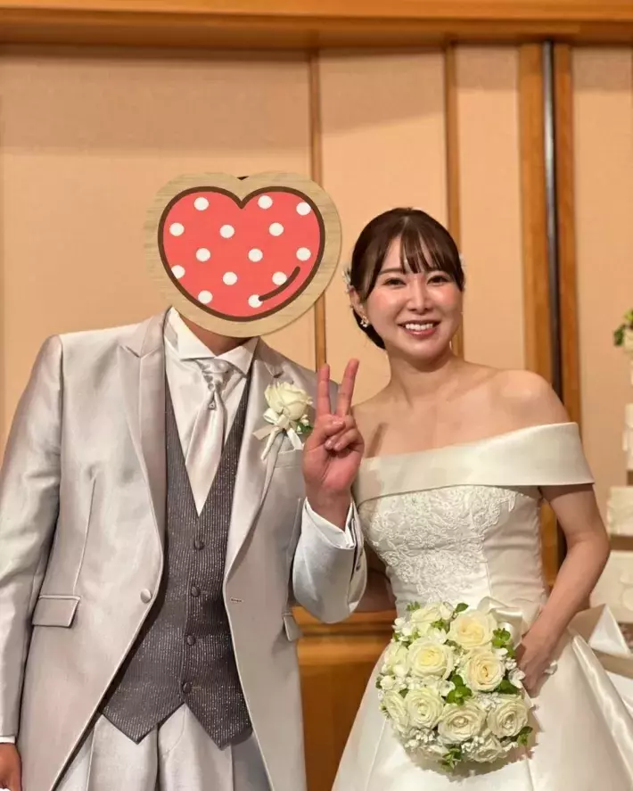 其實新郎早在2020年12月時就在電視節目上宣布和曾是偶像的「一般女性」結婚,昨天則是宴客舉辦活動,不過有趣的是兩人一開始似乎並不想聲張,成瀬理沙雖然在IG上傳自己身著婚紗的模樣卻遮住新郎的臉,而參加婚禮的男方親友石田たくみ(石田拓海,也是新郎搞笑組合的搭檔)也很有默契地把成瀬的臉遮了起來,但是⋯